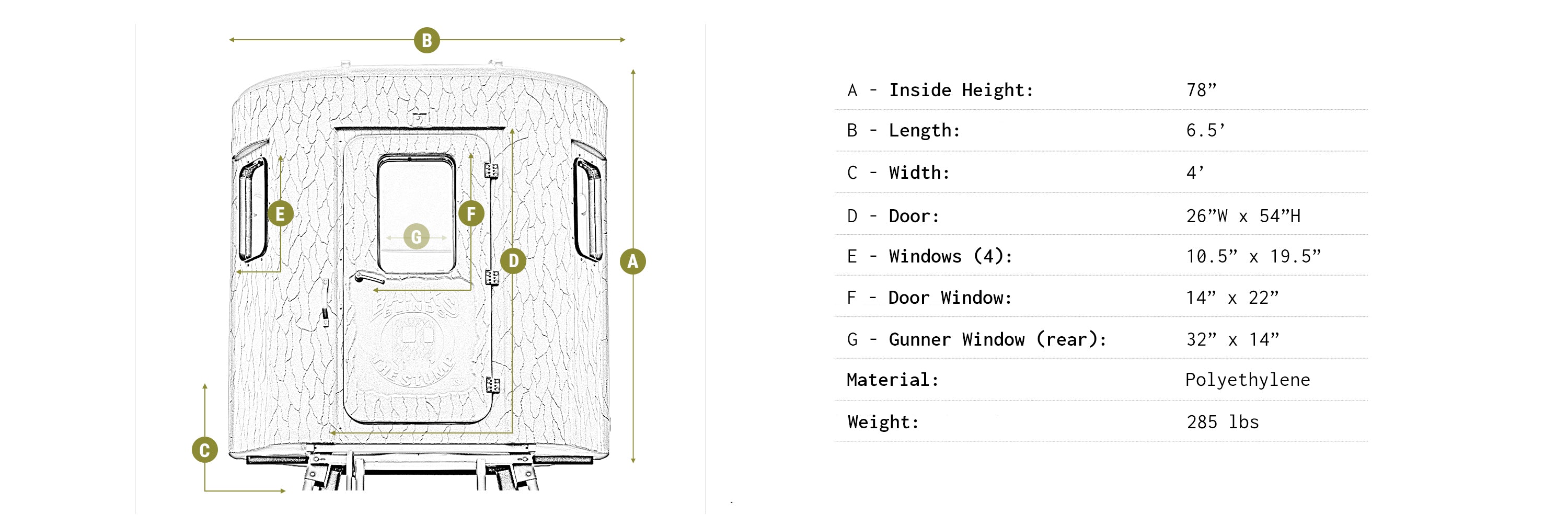 The Stump 2 is our only oval shaped blind that comes decked out with accessories. This shape makes it ideal for crossbow and gun hunters.