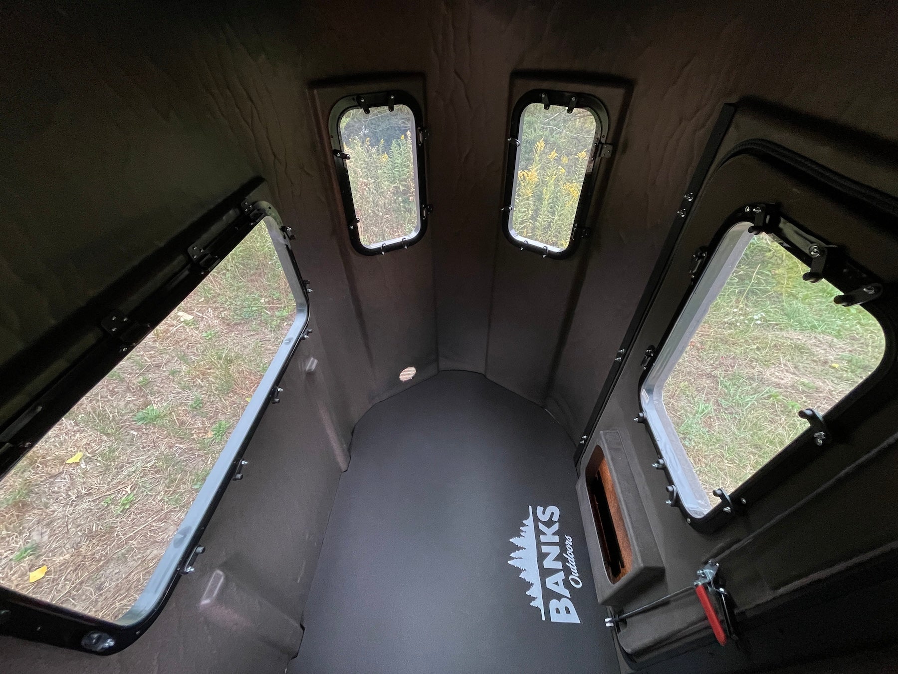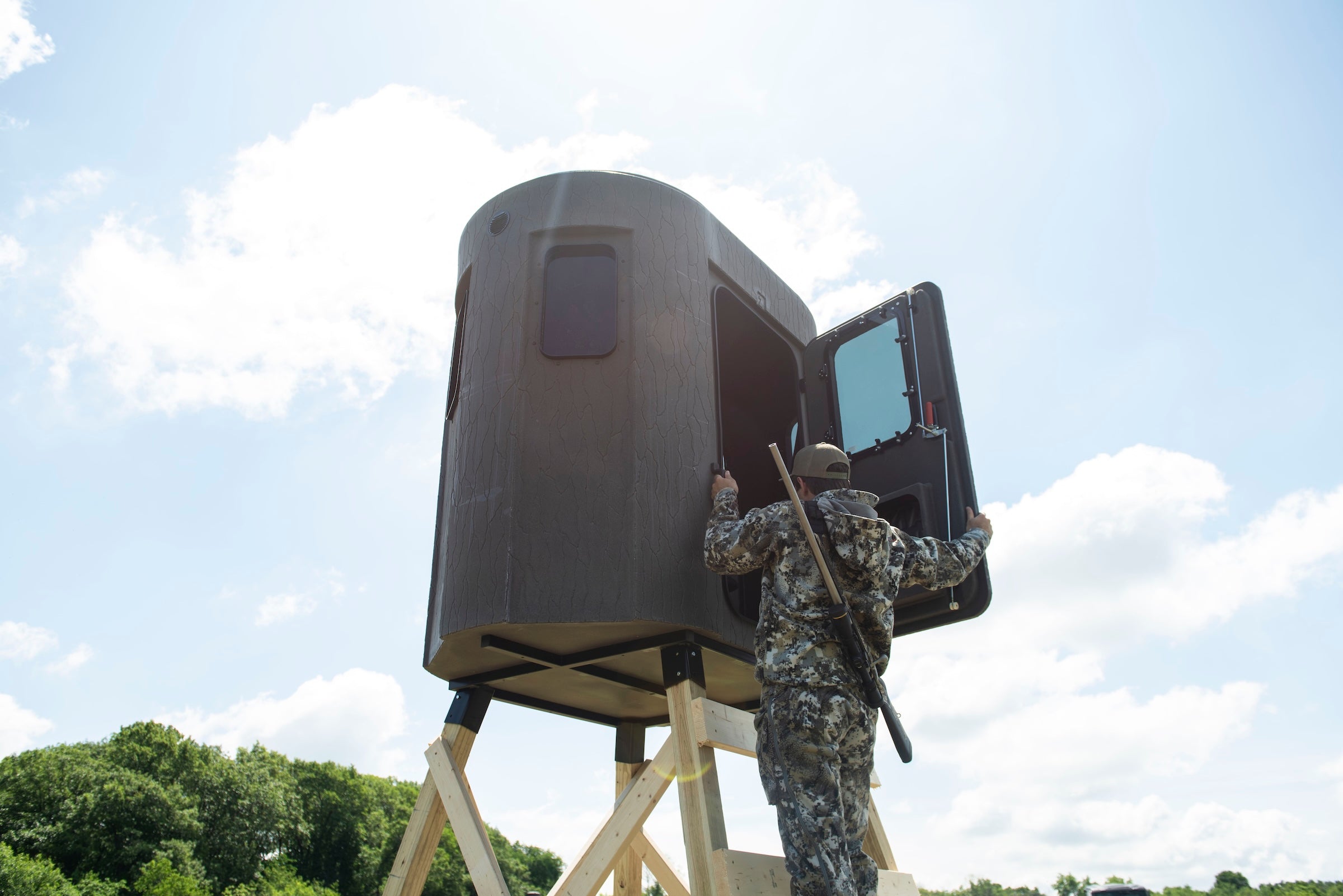 The Stump 2 is an ideal hunting blind for one to two hunters, offering comfort, functionality, and durability in a compact design. It features a convenient walk-through door that swings outward, maximizing interior space and ensuring easy access for hunters of all ages and mobility levels. Like Banks Outdoors’ larger models, the Stump 2 is equipped with strategically placed windows on all sides, delivering a full 360-degree view for excellent visibility and shot opportunities. Built with gun hunters in mind, it provides ample room for movement and shooting, while maintaining a low profile and exceptional concealment in various hunting environments.