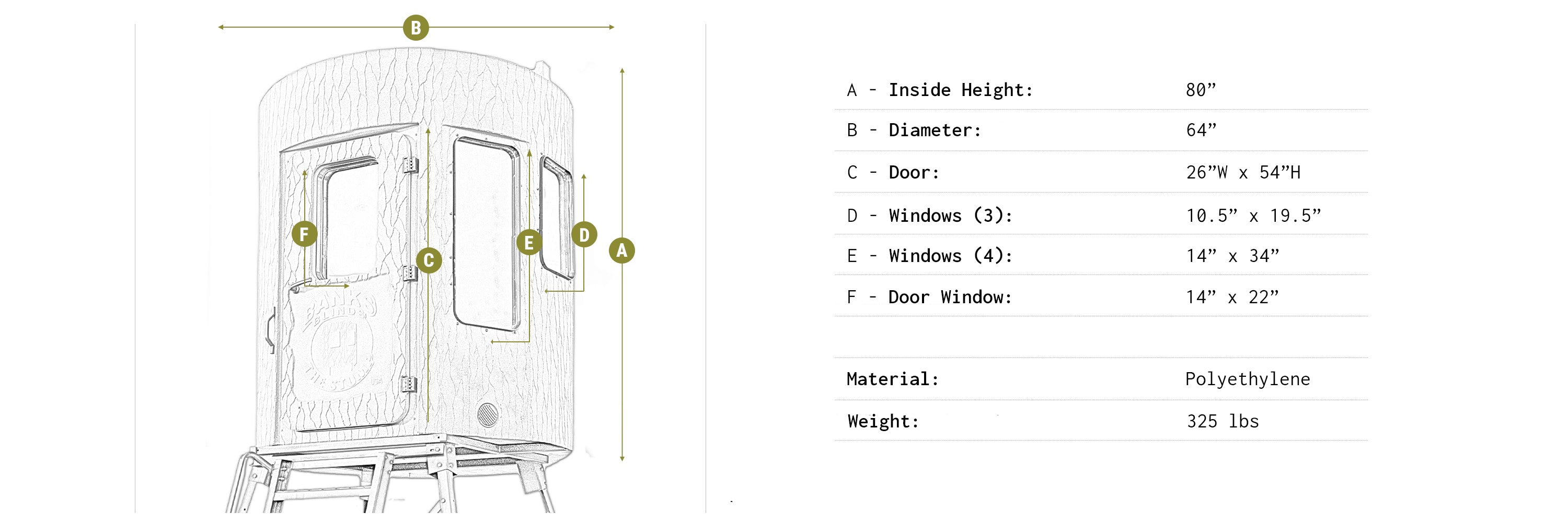 The Stump Blinds are American-made using ultra-durable, UV-stabilized polyethylene that resists fading, weather damage, and rot. Featuring a realistic, bark-like texture, the material is both weatherproof and paintable, allowing for easy customization. Designed for longevity, these blinds provide dependable concealment in all seasons and outdoor environments.