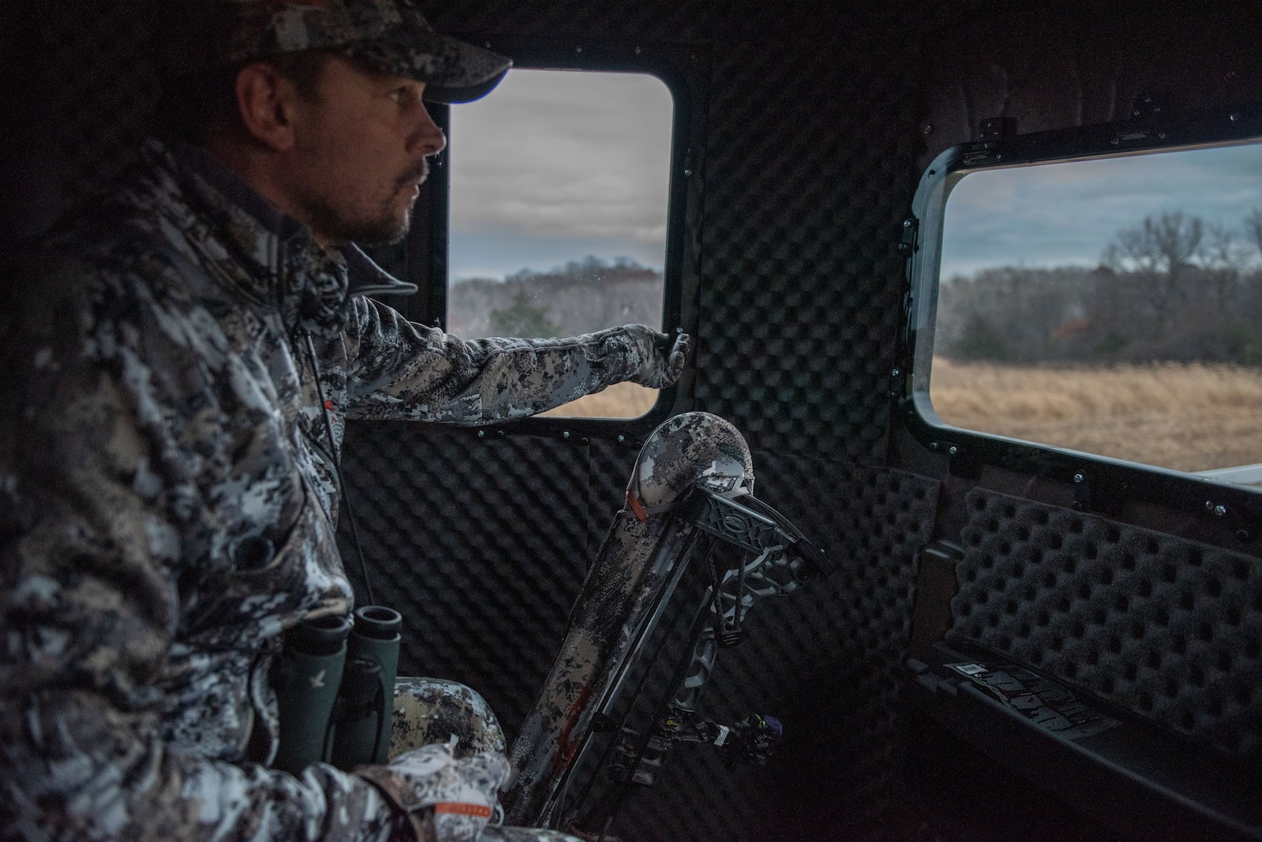 We went to the drawing board to solve the age-old problem of keeping concealed in the blind, while still being able to see the action happening all around. Designed was the 'Phantom Edition' - your favorite Stump blinds now feature a tinted framed window. Built with every lighting situation in mind, the tint allows you to stay visually concealed inside your blind, while still being able to see out, from dawn until dusk.