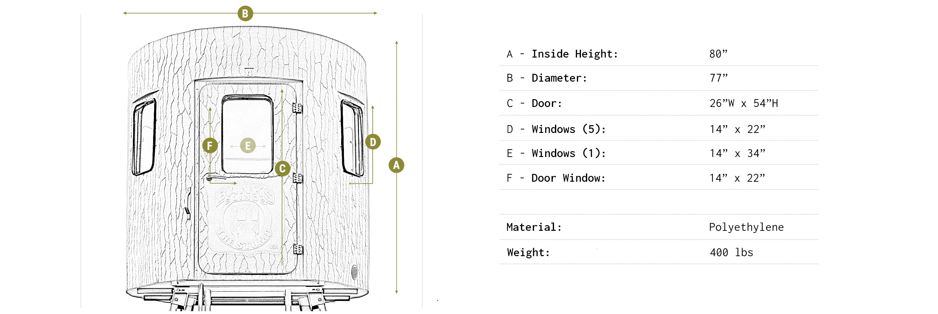 The Stump Blinds are American-made using ultra-durable, UV-stabilized polyethylene that resists fading, weather damage, and rot. Featuring a realistic, bark-like texture, the material is both weatherproof and paintable, allowing for easy customization. Designed for longevity, these blinds provide dependable concealment in all seasons and outdoor environments.
